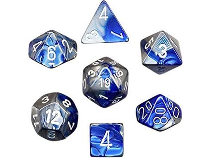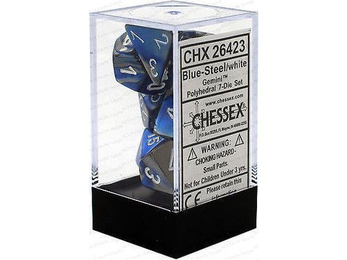 Chessex Dice - Gemini Blue-Steel with White - Set of 7 - CHX 26423