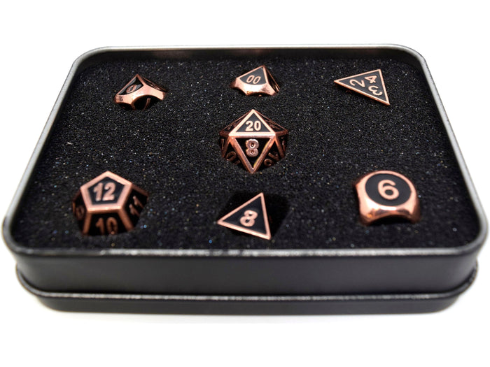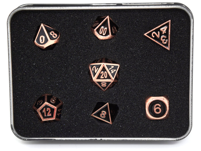 Die Hard Dice - RPG Gothica Metal Shiny Copper with Black - Set of 7
