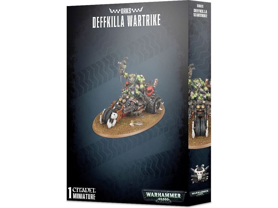 Fast-moving fighting platforms, Deffkilla Wartrikes make little concession to armoured protection for their riders. Scythe-wheeled, with an enormous rokkit engine afterburner on the back, these trikes not only move at a frankly vulgar pace but also pack enough firepower to make them extra killy. There’s no escaping the crew of a Deffkilla Wartrike – while Speedboss and driver alike are completely exposed to enemy fire, they’re quite happy to prove how tough they are by simply ploughing headlong into the biggest enemy formation they can find. Who wants to be seen cowering behind armour when there’s a fight to be had?