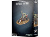 This multipart plastic kit contains the components necessary to assemble a Deffkilla Wartrike. Crewed by 2 enormous Orks – a driver and Speedboss – it sits low and long, its massive engine housed between the serrated rear wheels for maximum torque (and maximum flame-belching). Both driver and Speedboss are staring intently to their left, targeting an unfortunate enemy with their gaze – the driver wields a twin boomstikk that’s longer than his arm, and the Speedboss is waving a grappling hook-equipped snagga klaw. At the rear, a fuel-mixa Grot stands ready to add whatever dangerous chemicals he can to the tank with the air intakes on either side designed to resemble an Orkish maw.