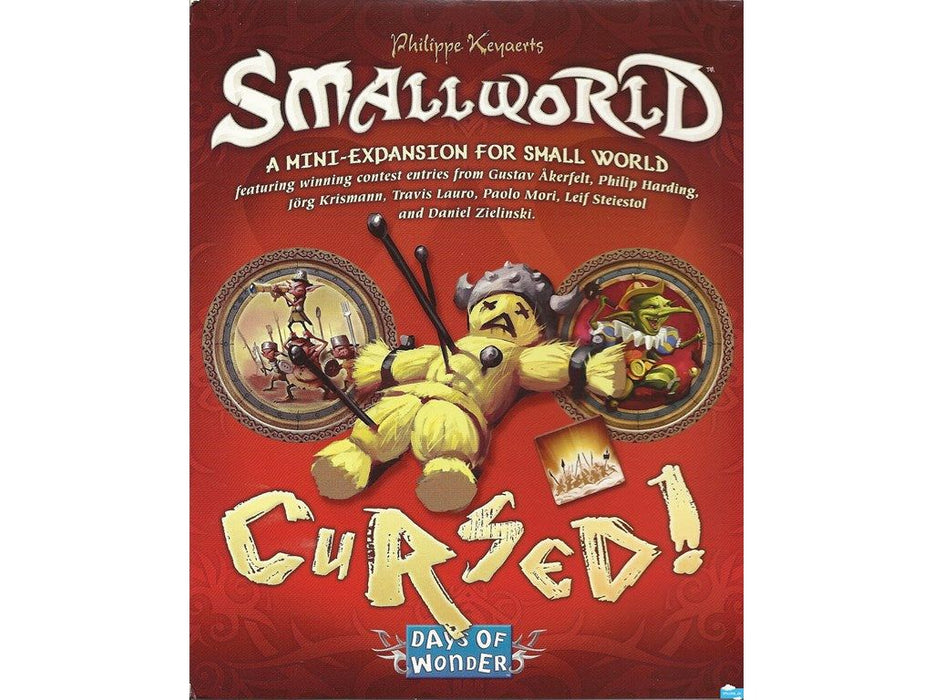 Cursed! is a Small World board game expansion. Cursed! includes 2 new Small World Races - Kobolds and Goblins; along with 5 new Special Power Badges - Cursed; Hordes of; Marauding; Ransacking; and Were-. The Cursed! expansion was created as part of the Small World Design Contest and features winning designs from the over 700 different entries submitted. This is an expansion and requires a copy of the Small World board game.