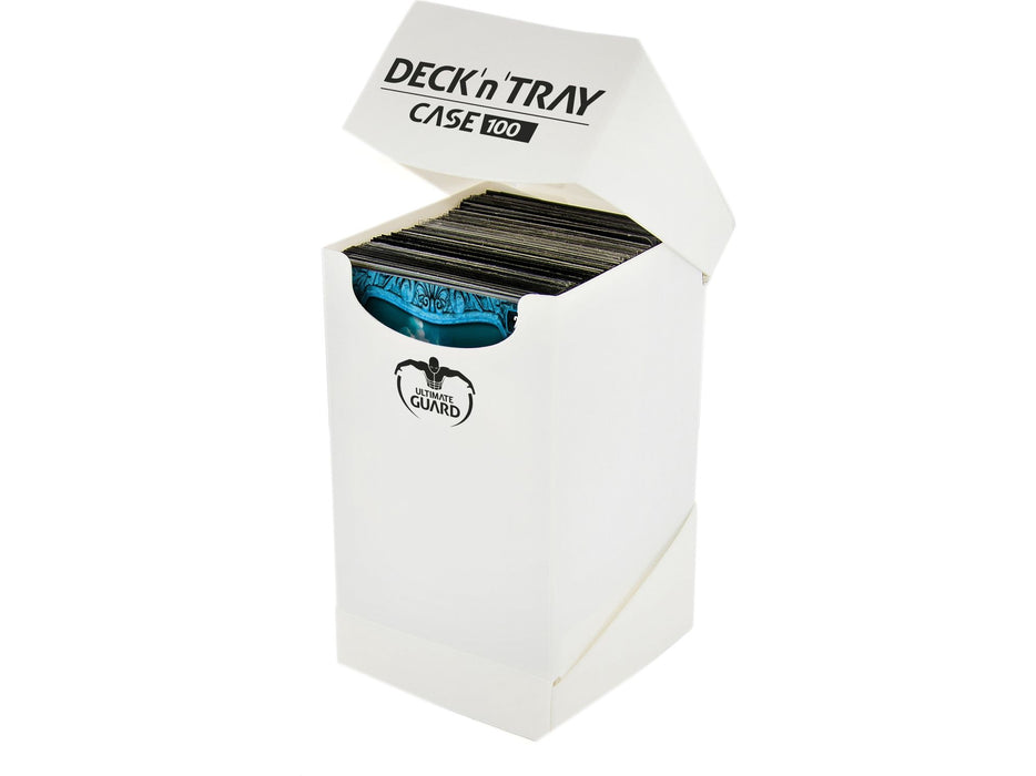 Self-locking and innovatively designed soft polypropylene deck box with dice tray for the protection and archival safe storage of more than 100 double-sleeved cards in standard size (e.g. Magic the Gathering™, Pokemon™ and others).
