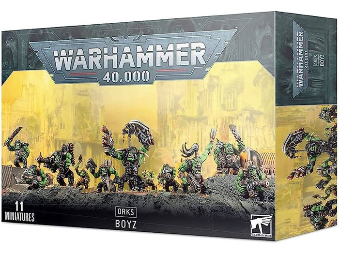 This boxed set contains 11 multi-part plastic Ork Boyz, and includes options for sluggas, choppas, shootas, heavy weapons and stikk bombz. Models supplied with 32 mm round bases.